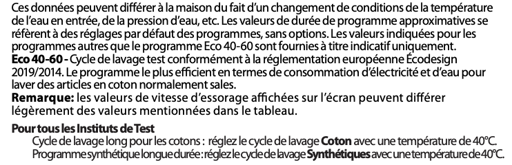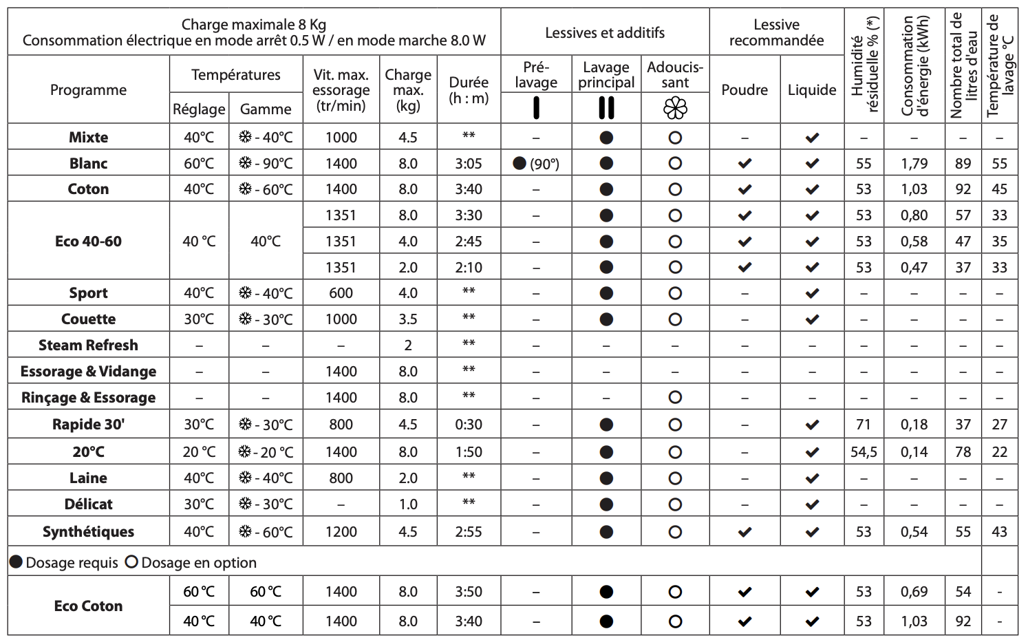 Notice Whirlpool FFB8448BVFR : Section TABLEAU DES PROGRAMMES