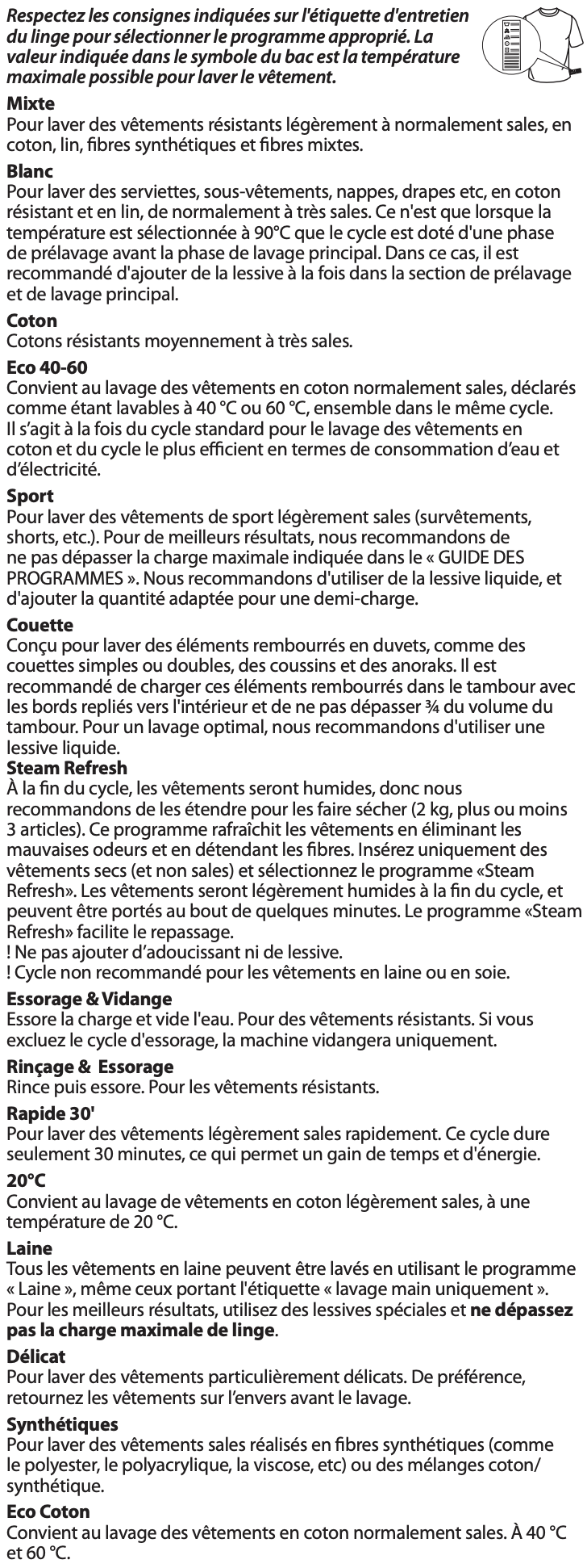 Notice Whirlpool FFB8448BVFR : Section PROGRAMMES