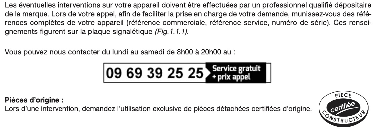 Lisez le chapitre INTERVENTIONS FRANCE dans SAV de la notice