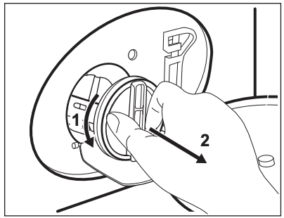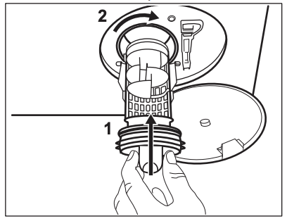 11. Replacez le filtre dans les guides spéciaux en le tournant vers la droite. Assurez-vous de serrer correctement le filtre afin d'empêcher toute fuite.