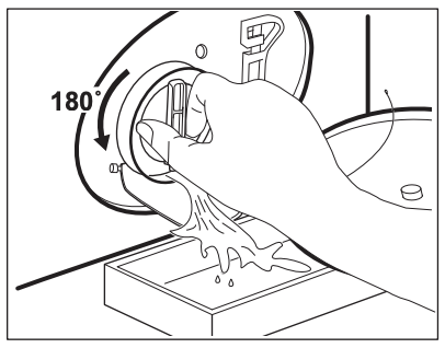 4. Tournez le filtre à 180 degrés vers la gauche pour l'ouvrir, sans le retirer. Laissez l'eau s'écouler.
