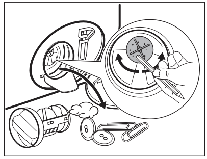 8. Si nécessaire, retirez les peluches et objets du logement du filtre.