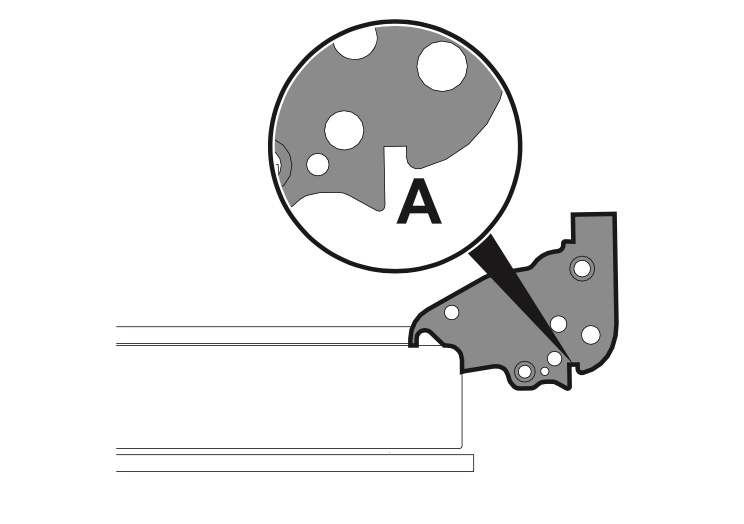3. Pour remonter la porte, introduisez les charnières dans les fentes prévues à cet effet sur le four en vous assurant que les rainures A sont complètement posées contre les fentes. Abaissez la porte puis, après l’avoir positionnée, sortez les pivots des trous des charnières.