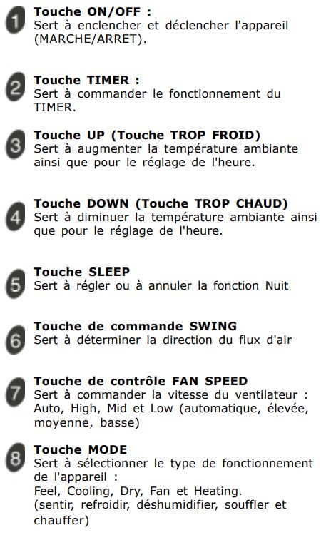 TCL TAC07CPBRV : Quelles sont les commandes à distance ?