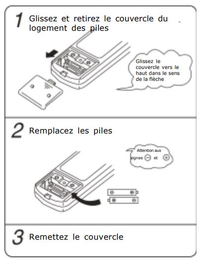 Retirez le couvercle du logement des piles suivant le sens de la flèche.