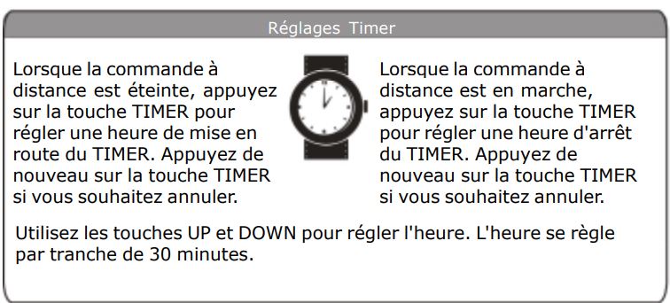 Remarque: après le réglage du TIMER, vérifiez si l'indicateur TIMER sur l'unité intérieure s'allume.