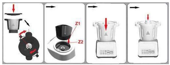 2. Insérez le bol dans la douille du bol. Assurez-vous de placer Z1 au point Z2. Un "clic" sonore sera également entendu à ce moment, ce qui signifie que le bol est bien positionné.