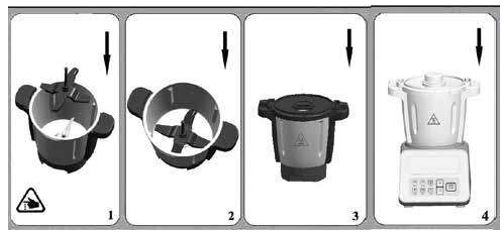 2. N'ajoutez pas d'ingrédients susceptibles d'endommager ou de bloquer le protège lame lorsque la lame est en mouvement et que le protège-lame est installé.