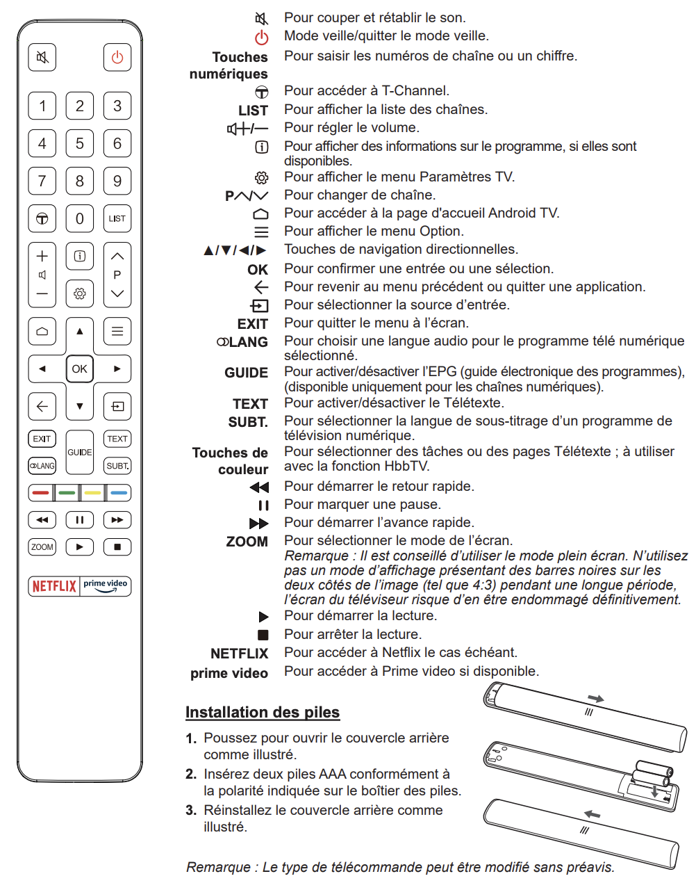 La plupart des fonctions de votre téléviseur sont disponibles par le biais des menus apparaissant à l’écran. La télécommande fournie avec votre téléviseur peut être utilisée pour parcourir les menus et effectuer les différents réglages.