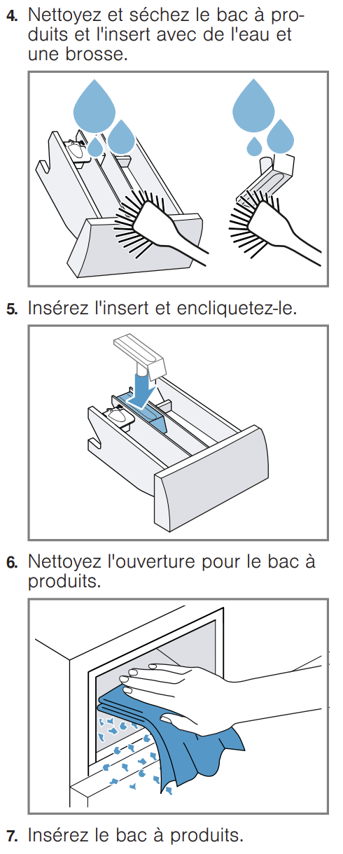 Bosch WAN28219FF : Comment nettoyer le bac à produits ?