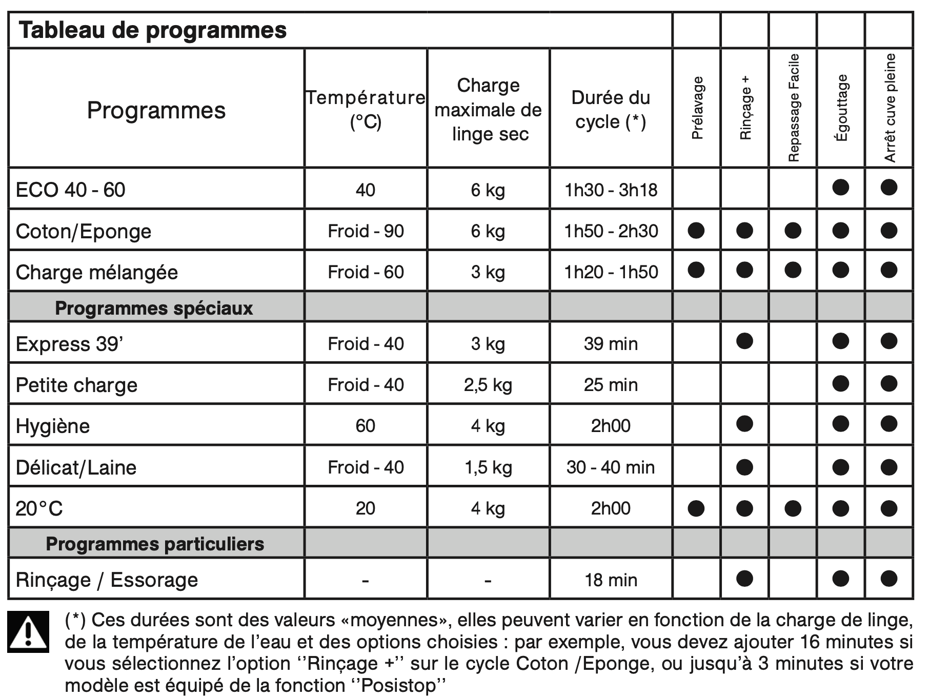 Pour optimiser au plus juste les temps de lavage et les consommations d’eau et d’énergie, votre lave-linge adapte les paramètres de cycle à chaque utilisation.