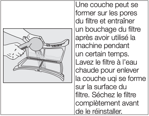 • Les peluches et fibres qui se dégagent du linge dans l’air au cours du cycle de séchage sont récupérées par le « Filtre à peluche ».