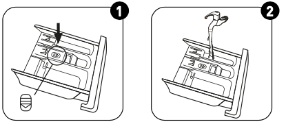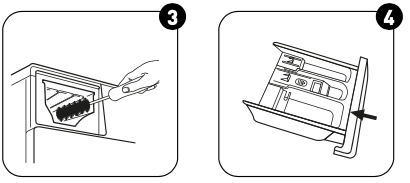 2. Nettoyez le compartiment à lessive et le couvercle de l'assouplissant sous l'eau.