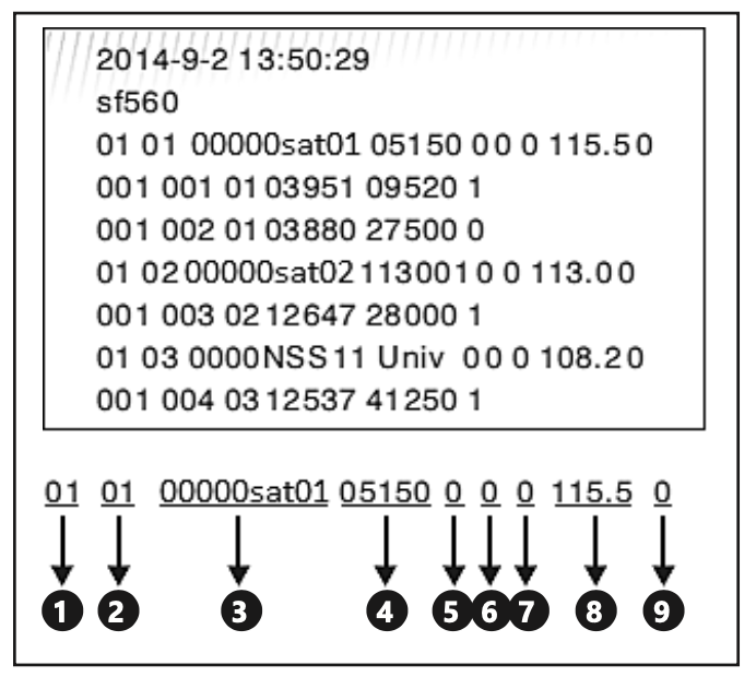 - Ce numéro indique quel satellite est affecté par le transpondeur.