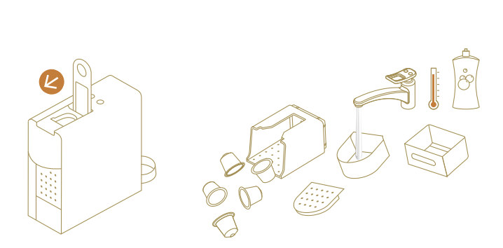 1 - Lorsque la machine est éteinte, retirer le réservoir d’eau et soulever le levier