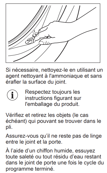 Electrolux EW6F4814SA : Comment nettoyer le joint du hublot ?