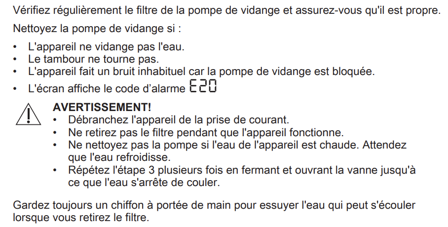Electrolux EW6F4814SA : Comment nettoyer la pompe de vidange ?