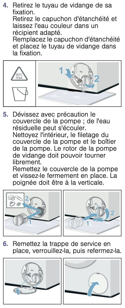 Bosch WAN2816OFF/32 : Comment déboucher la pompe à vidange ?