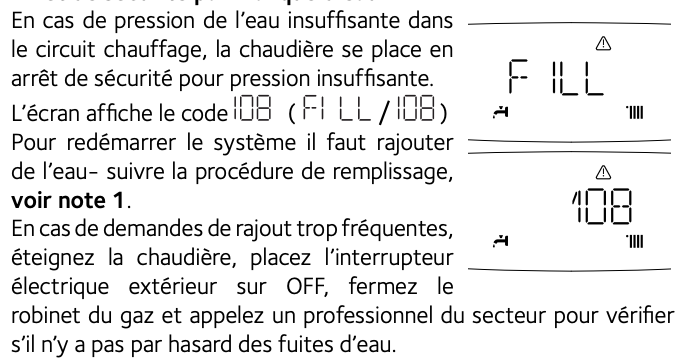 Chaffoteaux NIAGARA C GREEN ULTRA : Comment faire un arrêt de sécurité par manque d’eau ?