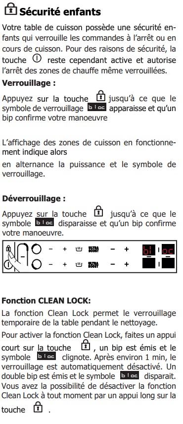 Brandt BPI164HUX : Comment activer la sécurité enfant ?