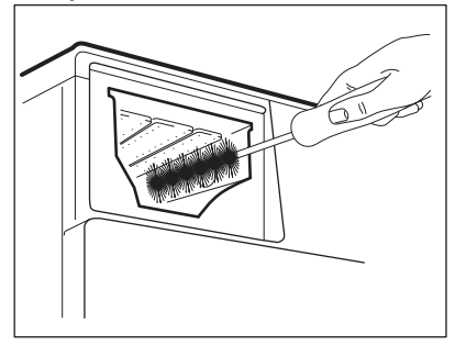 3. Assurez-vous d'éliminer tous les résidus de lessive dans les parties supérieure et inférieure du logement. Utilisez une petite brosse pour nettoyer les recoins.