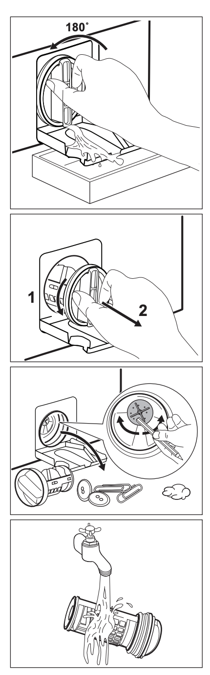 3. Tournez le filtre à 180 degrés vers la gauche pour l'ouvrir, sans le retirer. Laissez l'eau s'écouler.