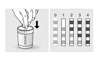 • Attendez 1 minute. Les carrés sur le bâtonnet test changent de couleur.