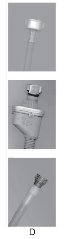 Vérifiez et nettoyez-le régulièrement. Pour les lave-linge avec un tuyau d’arrivée d’eau, comme illustré sur le schéma « D ».