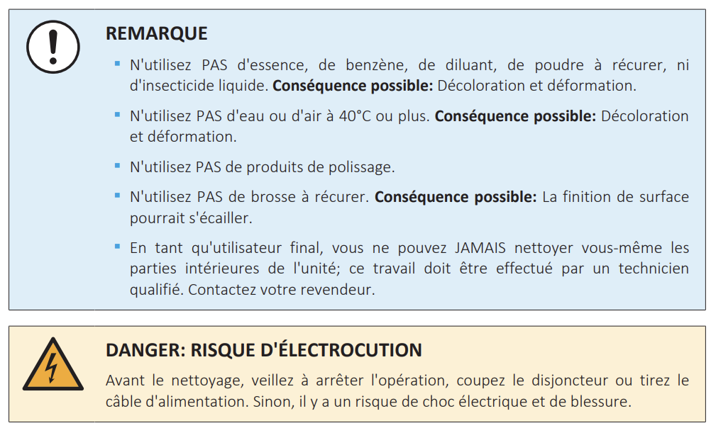 Comment nettoyer l'unité intérieure et l'interface utilisateur ?