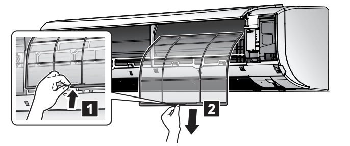 1 Poussez la languette au centre de chaque filtre à air, puis tirez-la vers le bas.