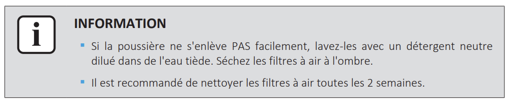 3 Lavez les filtres à air avec de l'eau ou nettoyez-les avec un aspirateur