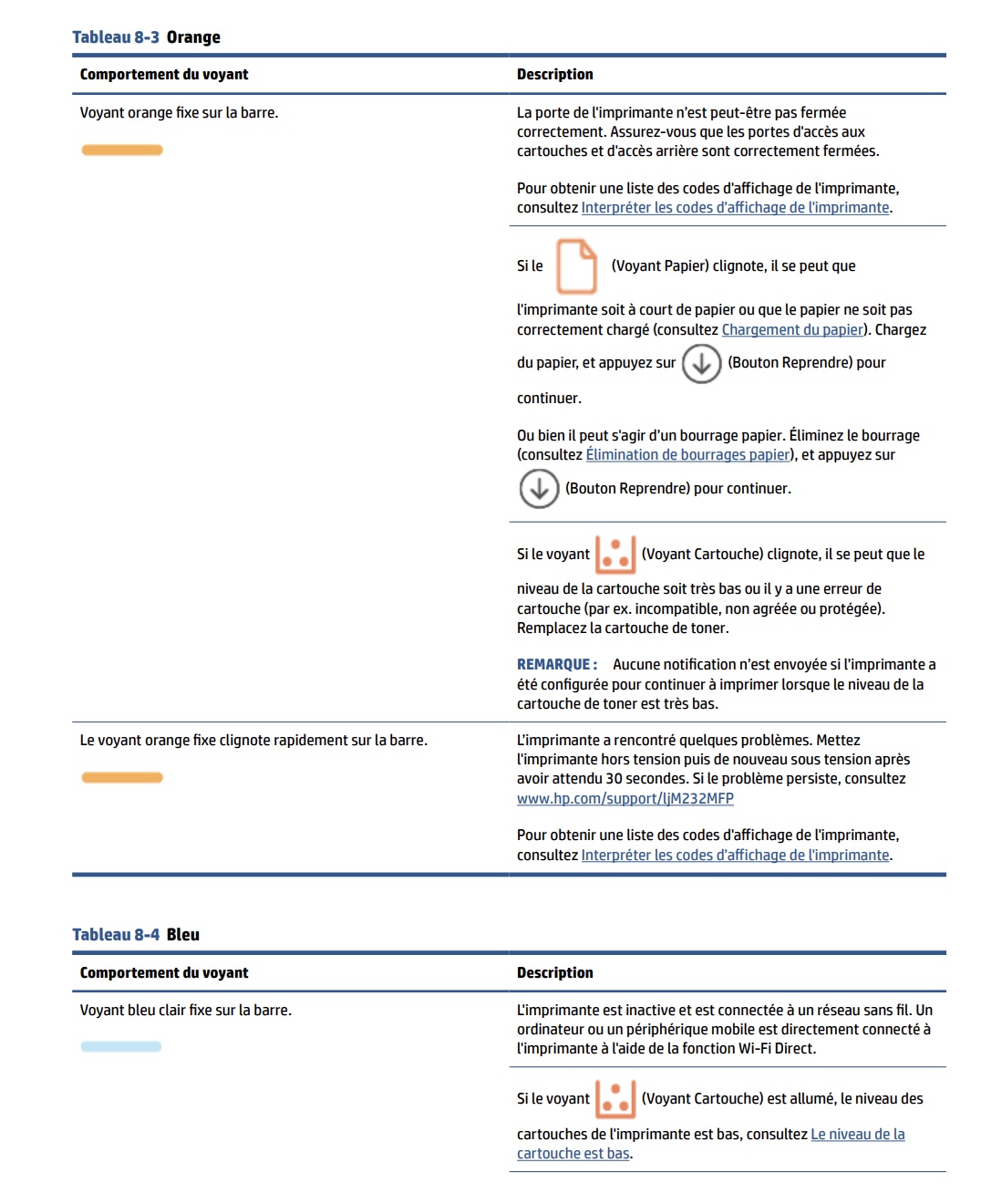 Notice HP LASERJET MFP M234SDN Interprétation de l'état des voyants du panneau de commande