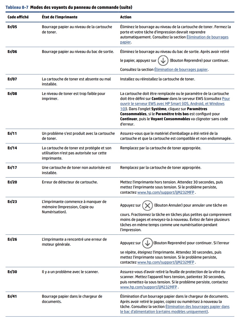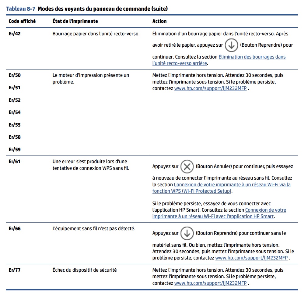 Notice HP LASERJET MFP M234SDN Interpréter les codes d’affichage de l'imprimante