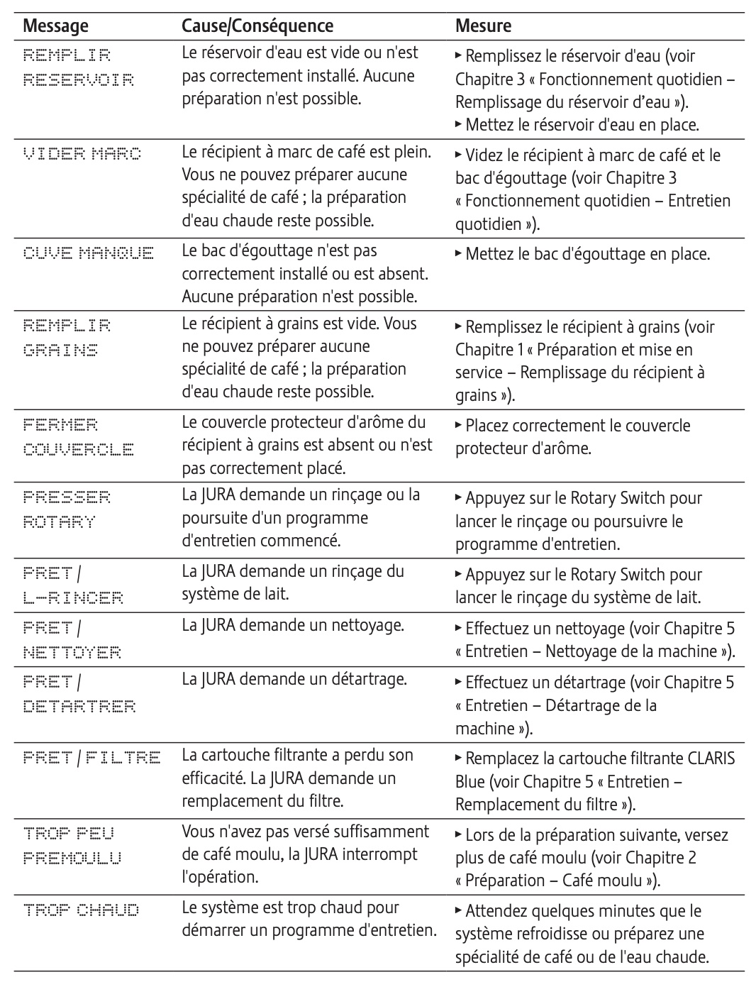 Lisez le chapitre Messages sur le visuel dans entretien et dépannage de la notice