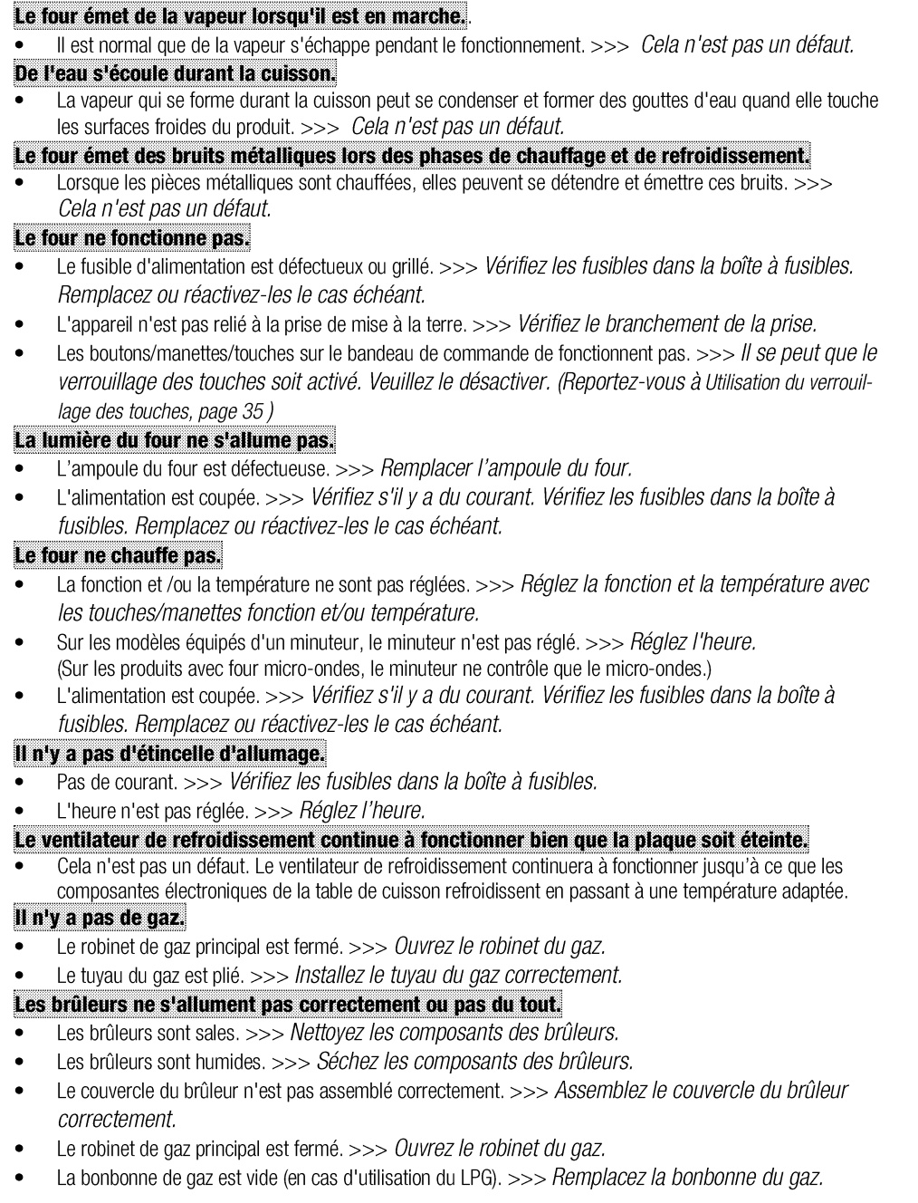 Notice Leisure CK100F324K Recherche et résolution des pannes