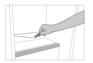 Pour assurer un débit constant et régulier de l’eau de dégivrage, nettoyez régulièrement l’intérieur du drain situé sur la paroi arrière du compartiment réfrigérateur, près du bac à fruits et légumes en utilisant l’outil fourni.