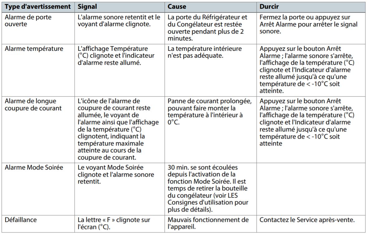 Lisez le chapitre Tableau d'avertissements dans entretien et dépannage de la notice