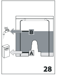 4. Verser dans le réservoir d'eau le détartrant jusqu'au niveau A (correspondant à un paquet de 100ml) imprimé à l'arrière du réservoir (fig. 28) ; ajouter ensuite de l'eau (un litre) jusqu'au niveau B (fig. 28) ; remettre le réservoir d'eau en place.