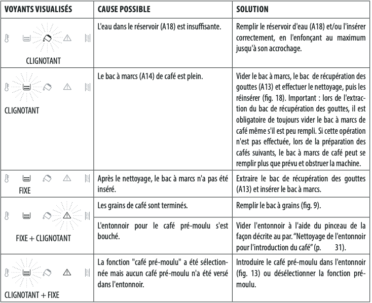 Notice Delonghi AUTENTICA ETAM 29.513.WB SIGNIFICATION DES VOYANTS