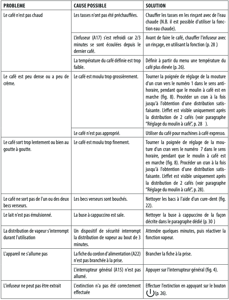 Notice Delonghi AUTENTICA ETAM 29.513.WB RÉSOLUTION DES PROBLÈMES