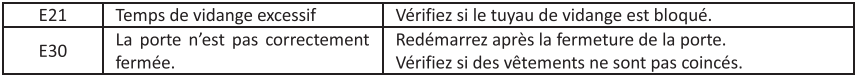 Notice Thomson THWD86140WH CODES D'ERREUR