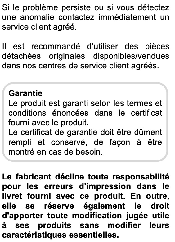 Lisez le chapitre DÉPANNAGE ET GARANTIES dans entretien et dépannage de la notice