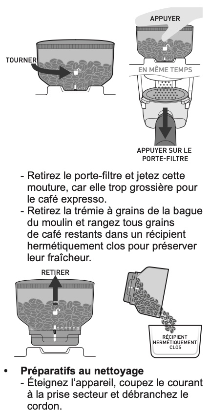 Lisez le chapitre ENTRETIEN ET NETTOYAGE DU MOULIN dans entretien et dépannage de la notice
