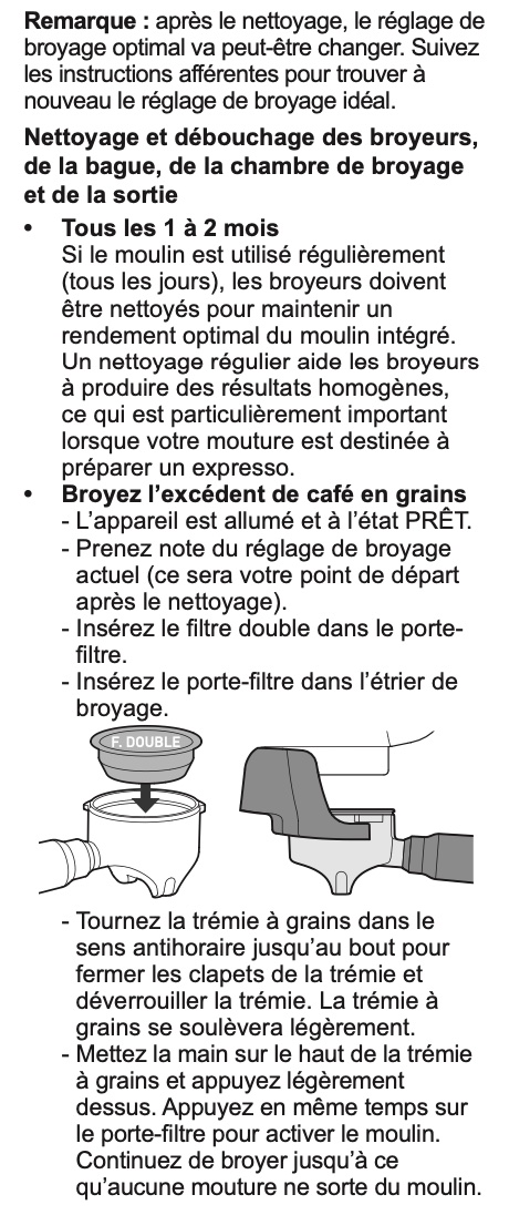 Notice Breville BARISTA MAX VCF126X01 ENTRETIEN ET NETTOYAGE DU MOULIN
