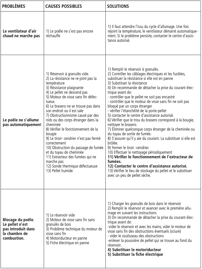 Étant donné que tous les poêles sont vérifiés dans leur parties de mouvement et de travail, et donc ils sont livrés dans un parfait état physique et de fonctionnement, il faut rappeler que le transport, le déchargement, le déplacement, un emploi incorrect ou une maintenance insuffisante, peuvent être les causes des inconvénients.