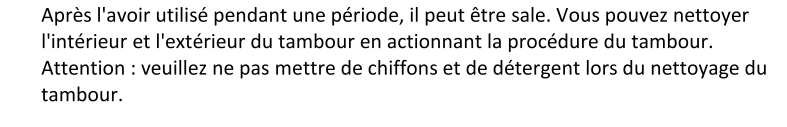 Lisez le chapitre Nettoyage du tambour(Conseil : une fois par mois) dans entretien et dépannage de la notice