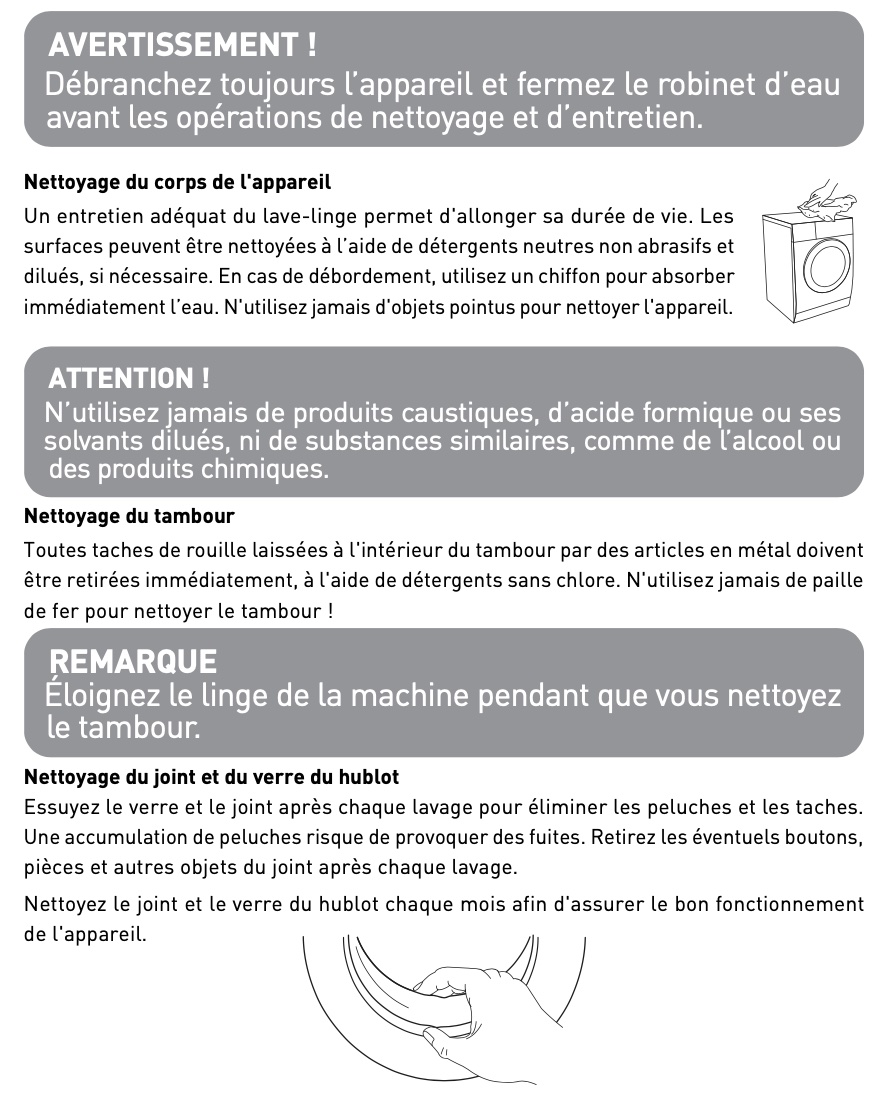 Notice Valberg WF1214BW566C Nettoyage et entretien