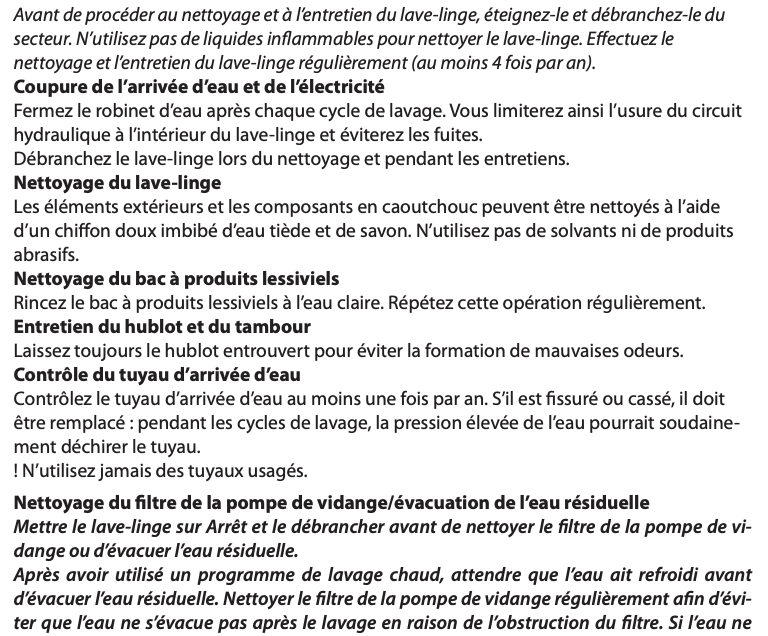 Notice Whirlpool W8W046WBFR CONSIGNES POUR L’ENTRETIEN ET LE NETTOYAGE
