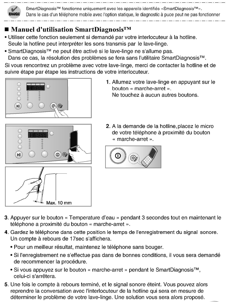 Lave-linge hublot . Rapprochez votre smartphone équipé de la technologie NFC et lisez directement le chapitre Smart Diagnosis dans Entretien et dépannage