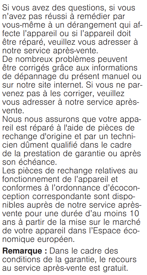 Lisez le chapitre Service après-vente dans entretien et dépannage de la notice